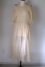 肩のデザインは1着1着異なり、ウエストの紐は大麻の乾燥繊維を編んで作りました
